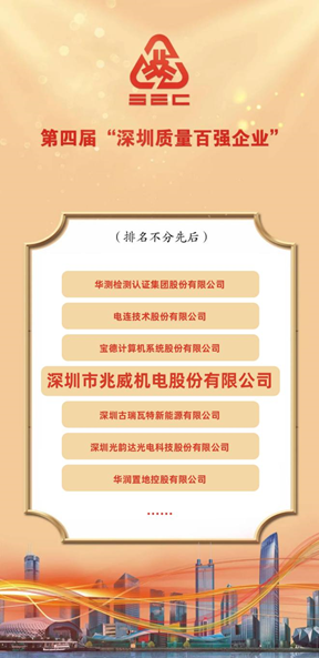 高質(zhì)量勇毅前行,兆威機電上榜“深圳市質(zhì)量百強企業(yè)”
