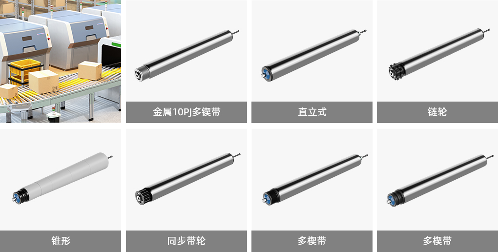 - 標準化產(chǎn)品:一般滾筒電機的尺寸為:300mm、400mm、500mm、800mm,p50mm、p60mm、p76mm等多種直徑。以及直通式、塑膠多楔帶、金屬多楔帶、鋼制雙鏈輪、同步帶輪等多種驅動(dòng)鏈接方式,支持標準化生產(chǎn)制造。